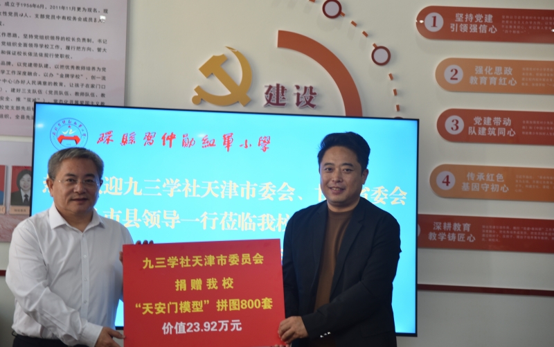 捐赠仪式在环县习仲勋红军小学举行。孔大陆代表社市委向环县习仲勋红军小学和庆城县马岭镇中心小学捐赠了价值29.9万元的“天安门”模型教具。