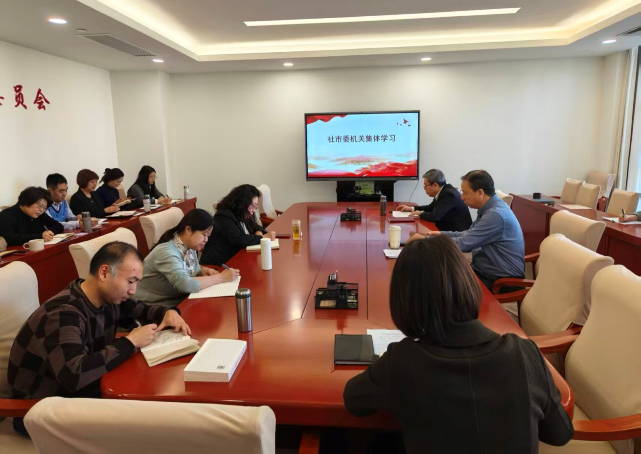 11月27日,社市委召开机关全体干部会议,围绕学习贯彻中共二十届四中全会精神和全面依法治国部署要求进行专题学习。专职副主委孟昭宽出席并讲话,秘书长严海主持。